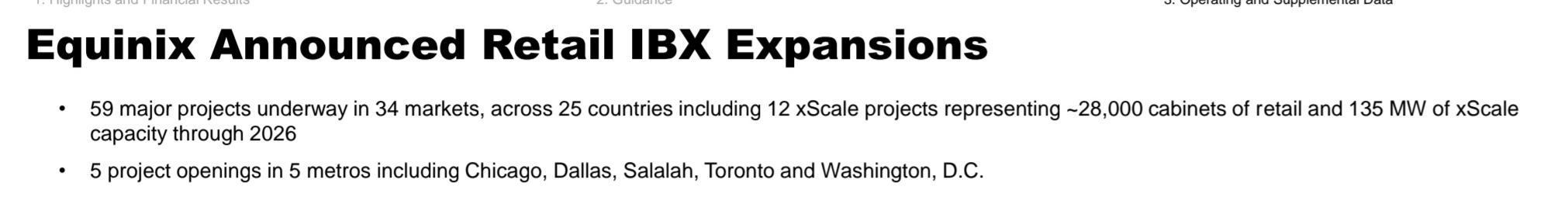 미국, 유럽, 아시아 등 34개 도시에서 59개 주요 Retail IBX Expansion 프로젝트를 동시에 진행 중입니다