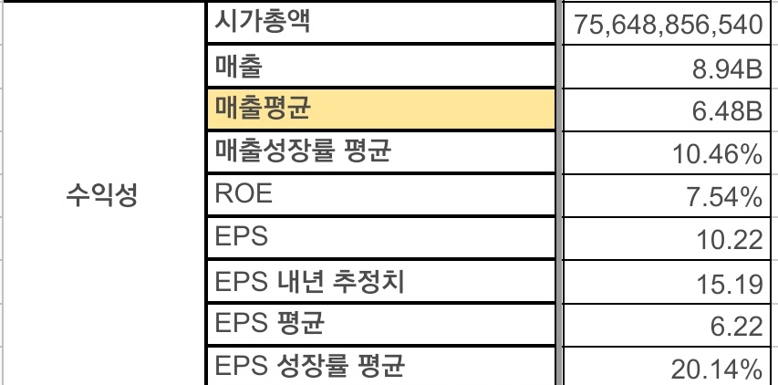 매출성장률 평균이 10%로 높습니다.