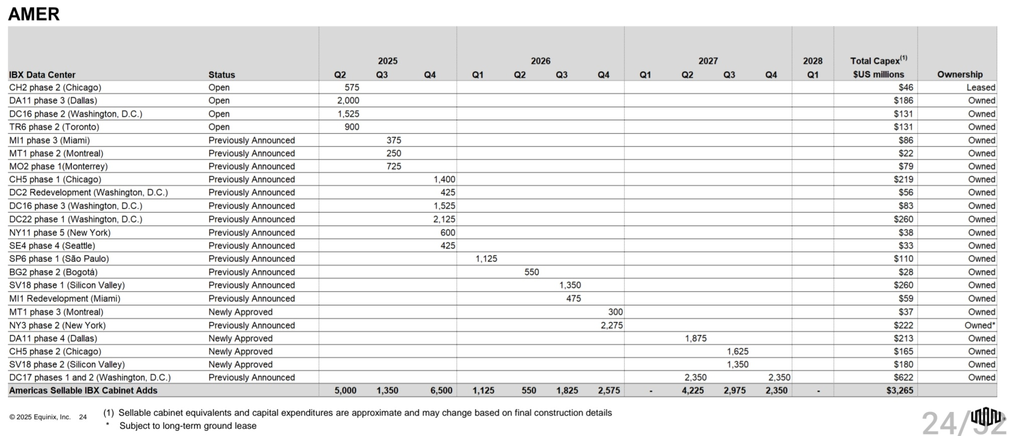 또한 equinix는 캐빗넷별로 비용을 받는데 전분기 대비는 $33, 전년동기대비는 $99 증가했습니다.