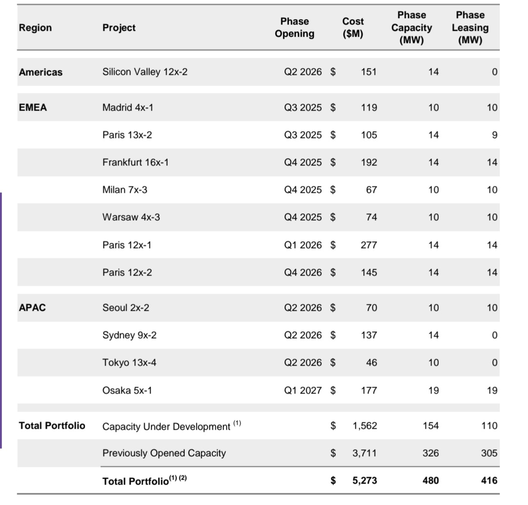 운영 및 개발 중인 xScale은 85% 이상 임대 또는 사전 임대가 완료됐습니다.
