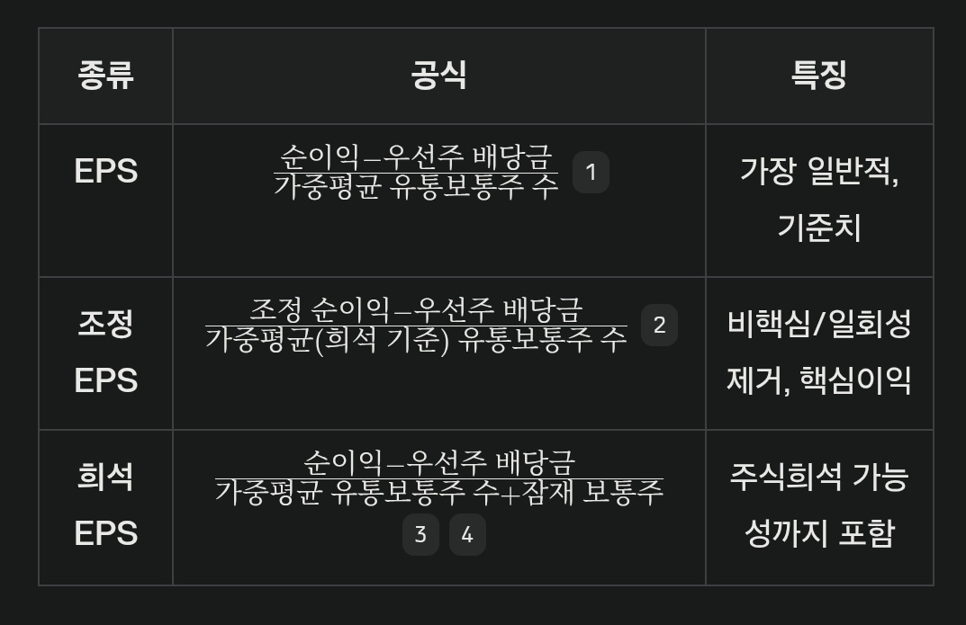 EPS, 조정 EPS, 희석 EPS의 차이점은?