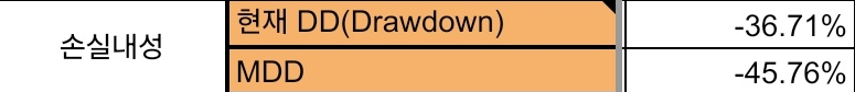 MDD가 -45.76%인데 현재 전고점을 회복하지 못하고 -36%입니다.