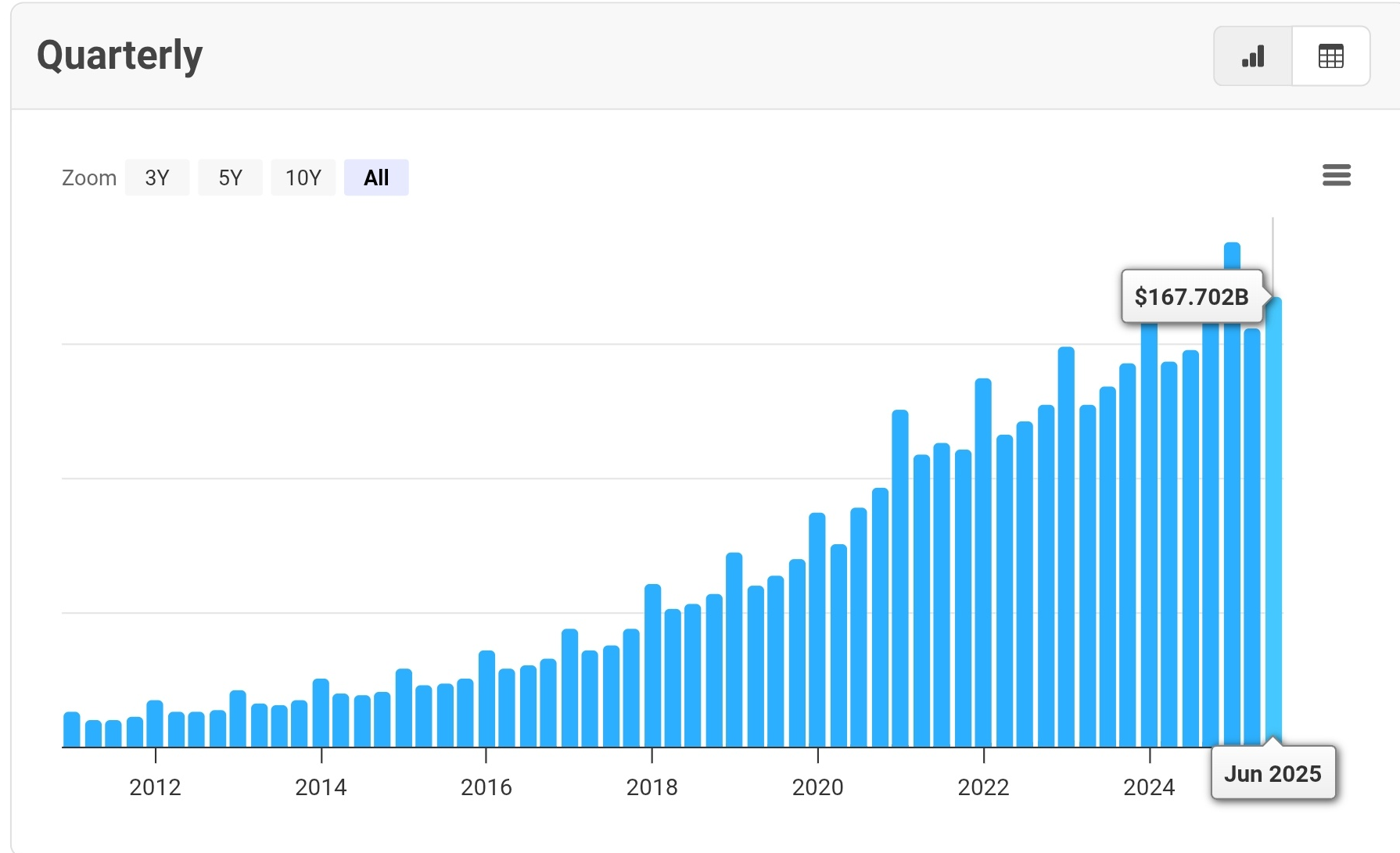 매출은 지속적으로 성장하고 있고 한 번도 하락한 적이 없습니다.