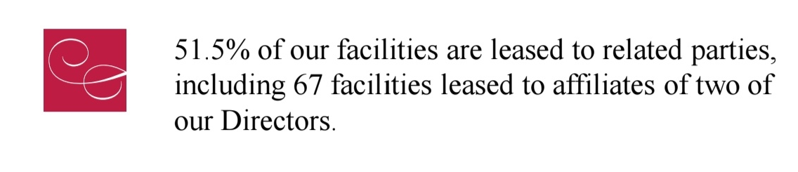 전체 130개 시설 중 51.5%가 이사 경영진과 관련 있는 임차인에게 리스해 줌